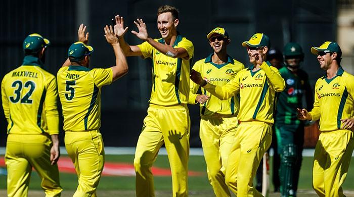 Australia´s strike bowler Billy Stanlake (C) celebrates a wicket with teammates during the 2nd match played between Australia and Pakistan as part of a T20 tri-series which includes host country Zimbabwe at Harare Sports Club, on July 2, 2018....from GEO TV - Sports https://ift.tt/2lOZvu8
